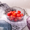 Hammer patterned glass salad bowl, small, medium, and large size, simple and elegant, and the texture is full of function and beauty. Clear and translucent, smooth edges, round bowl mouth, smooth lines.
